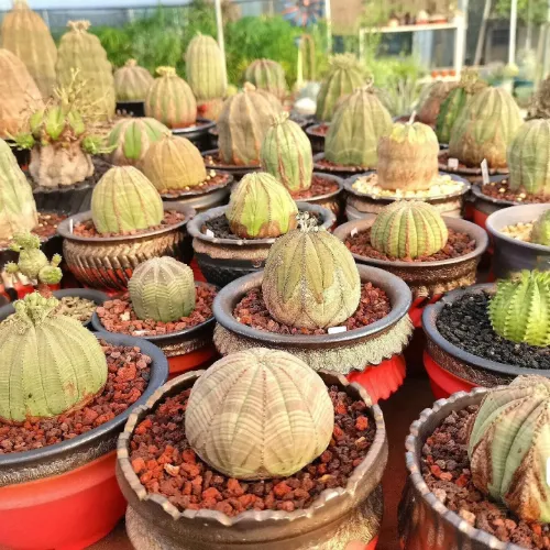 - Euphorbia obesa stands out among Euphorbia species for its perfect spherical shape and distinct ribbed pattern.