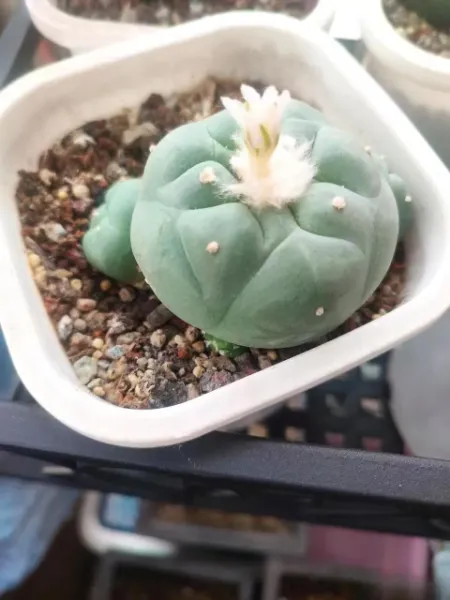 - Lophophora williamsii peyote seedlings: Hairs are exposed directly at the top! Though sparse, they’re not hidden by powder, so you can clearly see the white "star-like" hairs (slightly longer than those of L. Diffusa). The contrast with the green skin is obvious, catching your eye at a glance.